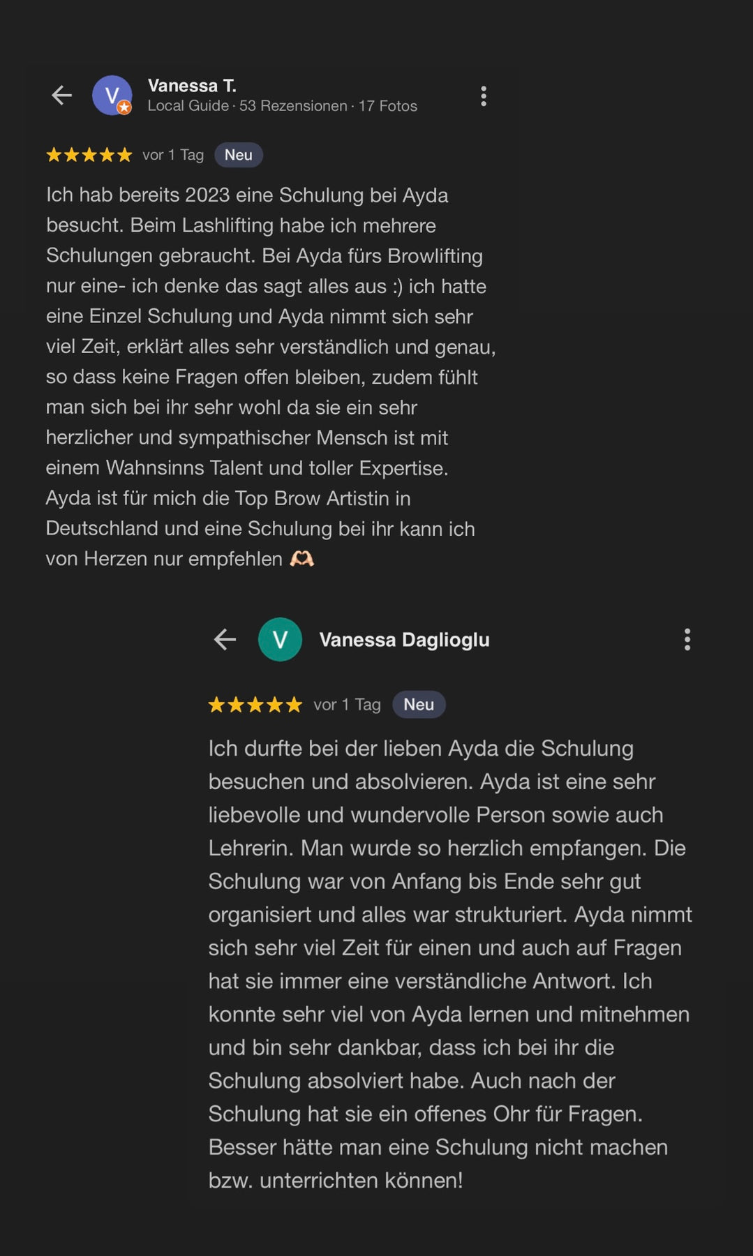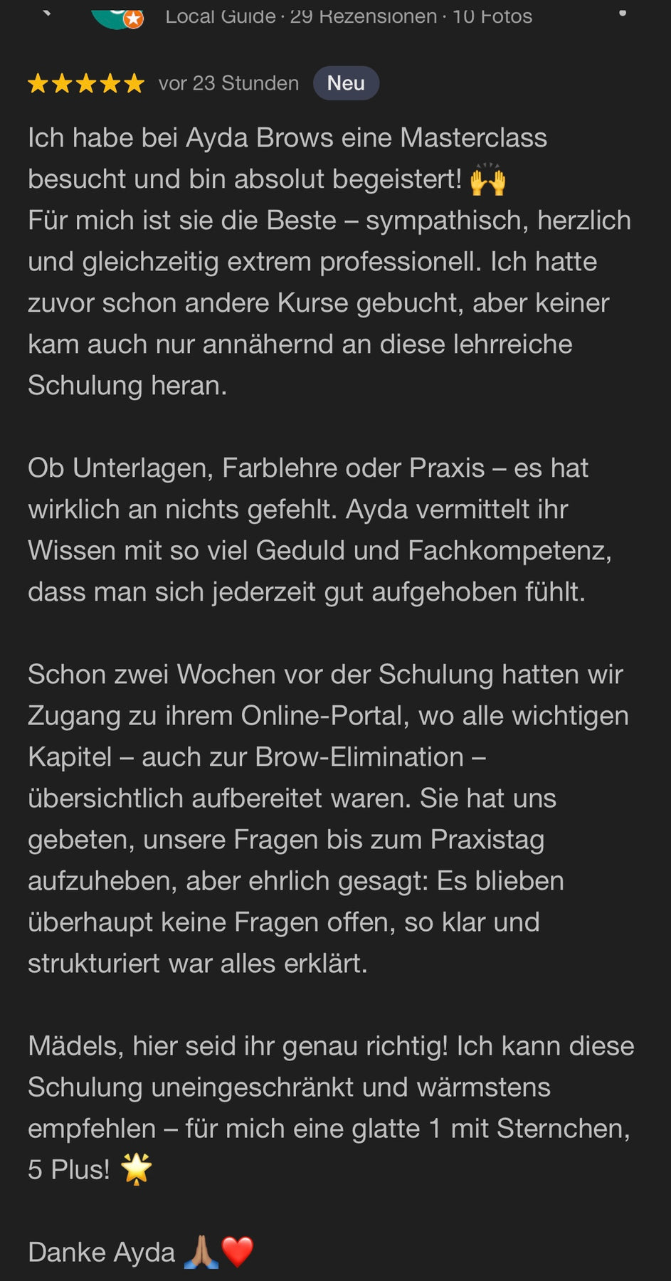 Für weitere Fragen, kontaktieren Sie uns gerne per E-Mail: aydabrowspro@gmail.com oder über Instagram-Nachrichten.